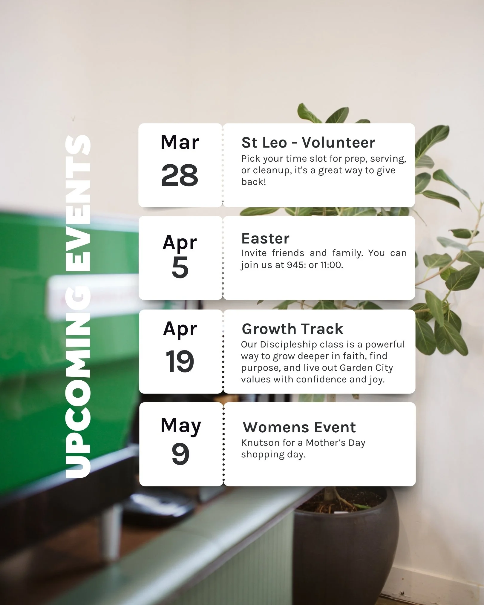 Invite a friend and come build community with us. Easter is a time to reflect, renew, and look to Hope that Jesus brings. See you at 9:45 AM or 11:00.